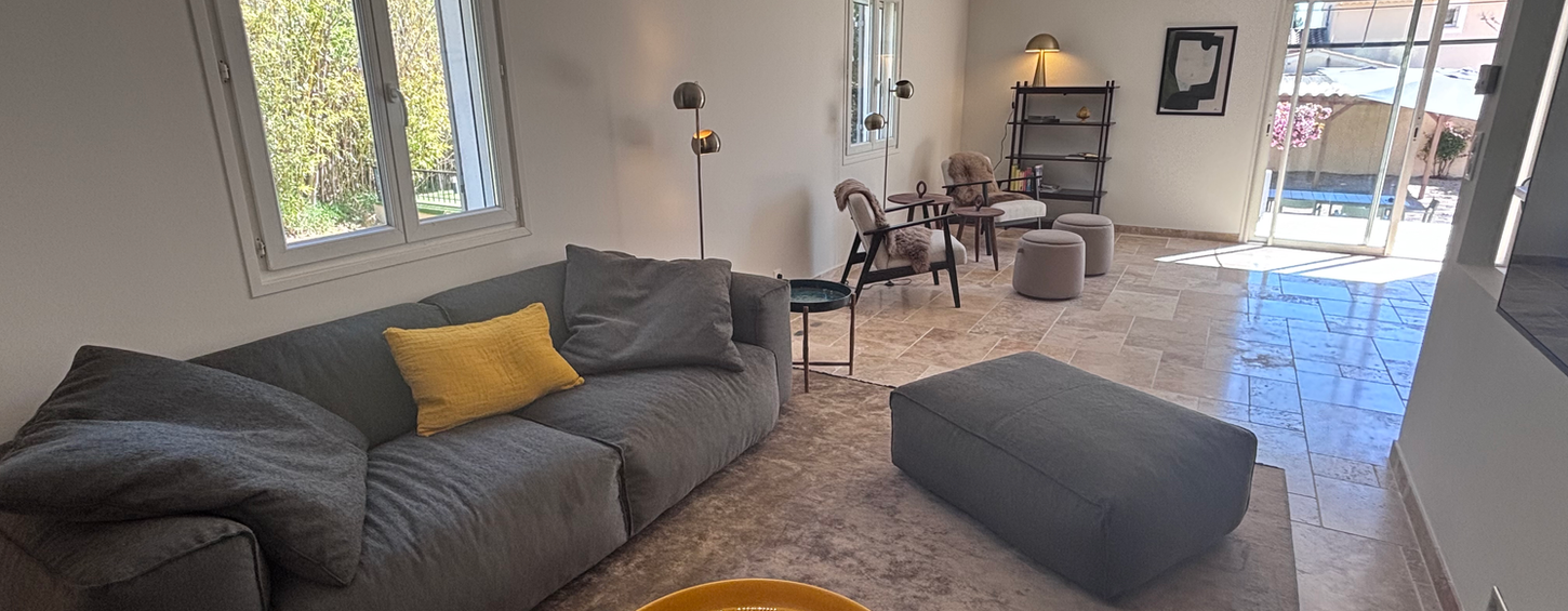 Klimatisierte Villa, 3 minuten vom Zentrum von Bédoin entfernt. Sie bietet 4 flexibel nutzbare Schlafzimmer, 2 Badezimmer, einen umzäunten Garten, Pool, überdachte Terrasse und einen Grillplatz. Zur Ausstattung gehören eine Ladestation für Elektrofahrzeuge, private Parkplätze für 3 Autos und ein sicherer Fahrradabstellraum. Perfekt für einen entspannten Urlaub in der Provence.